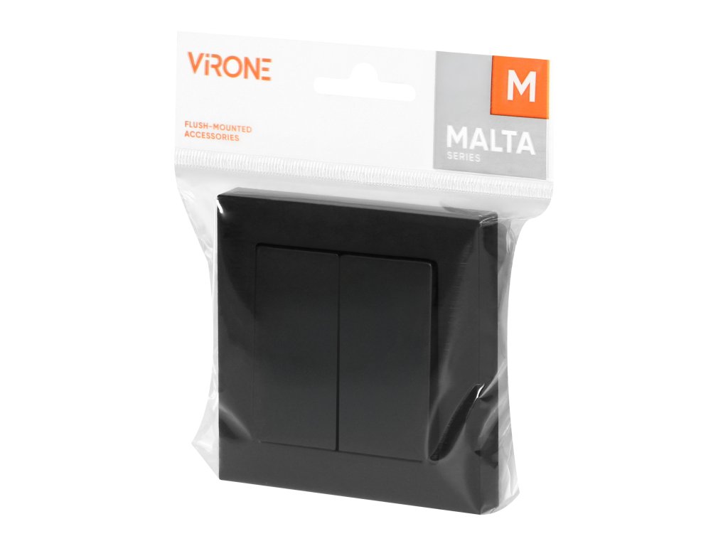 Malta je jednoduchá séria zapustených spínačov a zásuviek. Moderný systém rýchleho pripojenia spínačov (vodiče sa pripájajú ich priamym zasunutím do tela) zabezpečuje bezpečnú a spoľahlivú inštaláciu a demontáž vodičov. Zásuvky sú vybavené tradičnými skrutkovými spojeniami. Vnútorný dizajn terminálov zaručuje bezpečné pripojenie vodičov od 0,75 mm? do 2,5 mm?. Silná a robustná montážna mriežka a špeciálne montážne prvky umožňujú stabilnú a bezpečnú inštaláciu v krabici.Dvojtlačidlový spínač je prispôsobený na zapustenú montáž. Produkt sa používa na ovládanie osvetlenia, napríklad zloženého z lustrov a tradičných alebo moderných LED žiaroviek. Umožňuje zapínanie a vypínanie osvetlenia, rozdeleného do dvoch alebo viacerých zón. Mal by sa používať vo vnútorných priestoroch (IP20).