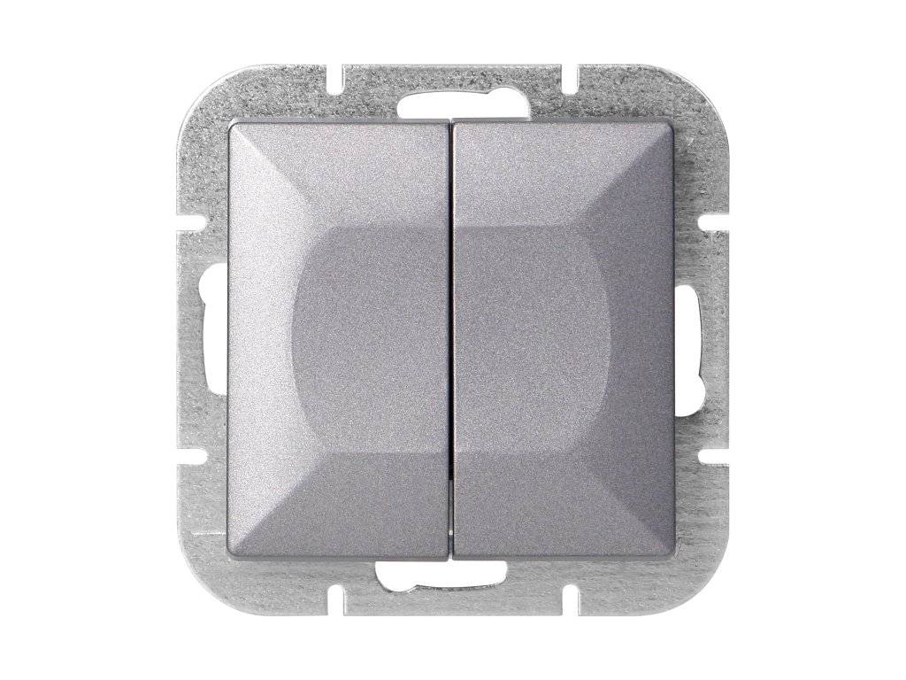 Modulárna séria so symetrickým systémom rámových dosiek (pre 1-, 2-, 3-, 4-, 5-modulov) umožňuje montáž produktu v horizontálnej aj vertikálnej polohe. Moderný rýchlospojovací mechanizmus (drôty sú pripojené priamo do tela tlačením) poskytuje bezpečnú a spoľahlivú inštaláciu a demontáž drôtov. Zásuvky sú vybavené tradičnými skrutkovými spojmi. Vnútorná konštrukcia svoriek zaručuje bezpečné pripojenie drôtov od 0,75 mm? do 2,5 mm?. Silná a robustná montážna mriežka a vysokokvalitné samozatahovacie prvky umožňujú stabilnú a bezpečnú inštaláciu v krabici. Špeciálne pružinové prvky uľahčujú upevnenie rámu do tela.Dvojtlačidlový vypínač je prispôsobený na zapustenú montáž. Produkt sa používa na ovládanie osvetlenia, napríklad zloženej z lustrov a tradičných alebo moderných LED žiaroviek. Umožňuje zapínať a vypínať osvetlenie rozdelené na dve alebo viac zón. Mal by sa používať v interiéri (IP20).