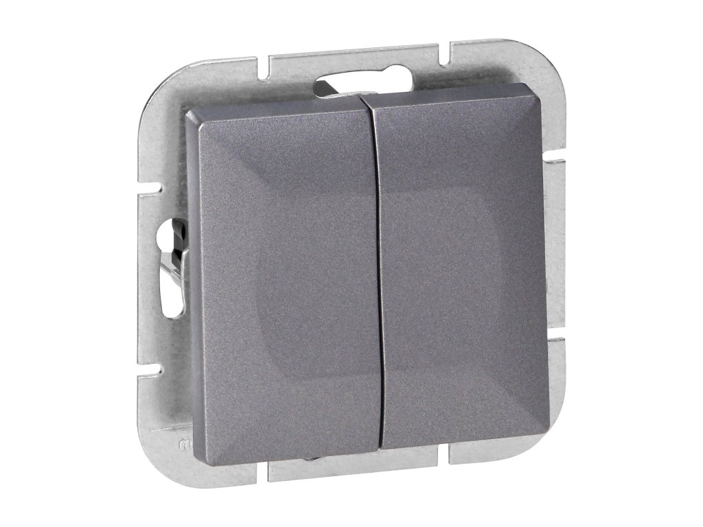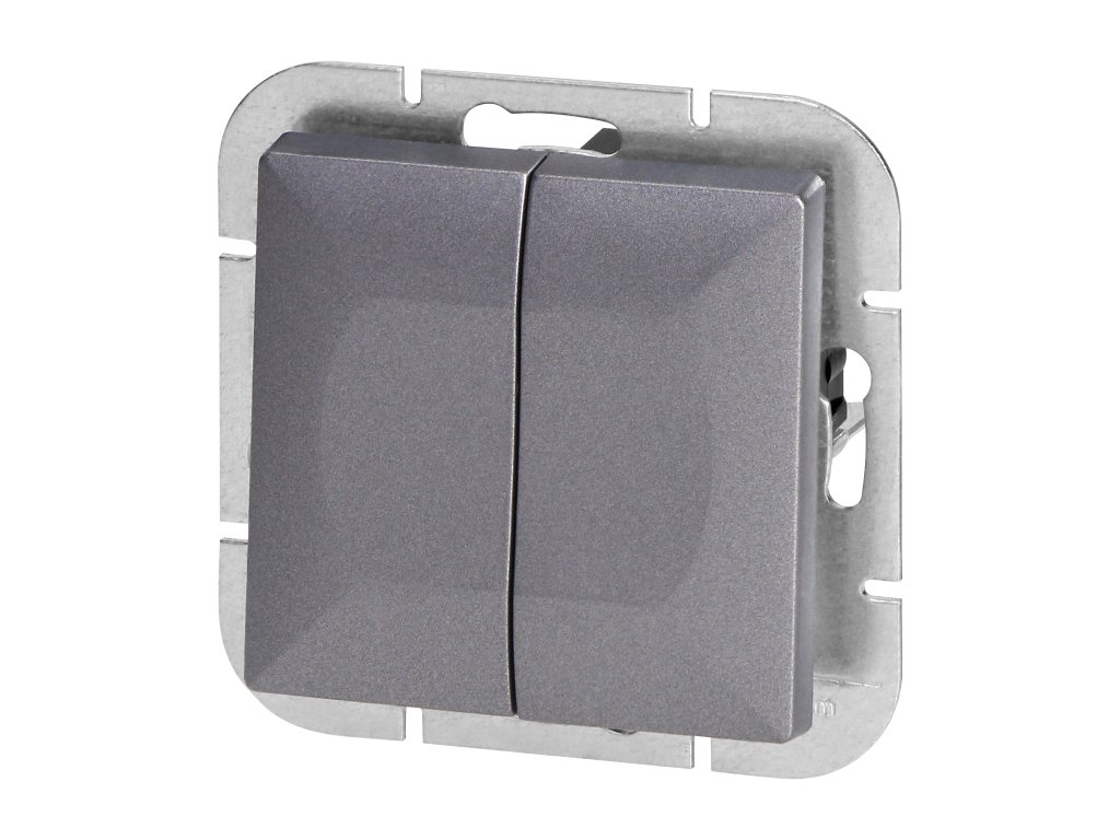 Zapustený dvojtlačidlový vypínač Pearl, 10A, 250V, WP-2P, antracit