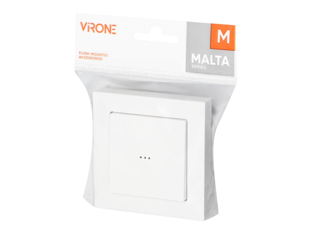 Malta je jednoduchý rad zapustených vypínačov a zásuviek. Moderný rýchlo-pripojovací mechanizmus vypínačov (káble sú pripojené ich priamym zatlačením do tela) poskytuje bezpečnú a spoľahlivú inštaláciu a odstránenie vodičov. Zásuvky sú vybavené tradičnými skrutkovými pripojeniami. Vnútorný dizajn svoriek zaručuje spoľahlivé pripojenie vodičov od 0,75 mm? do 2,5 mm?. Silná a robustná montážna doska a špeciálne montážne prvky umožňujú stabilnú a bezpečnú inštaláciu v krabici.Jednopólový vypínač s osvetlením je prispôsobený na zapustenú montáž. Je to najjednoduchší základný vypínač, ktorý pracuje na jednom okruhu a ku ktorému môže byť napríklad pripojená jedna lampa. Produkt však môže tiež ovládať iné zariadenia v prostredí. Navyše je tento model vybavený podsvietením - takže bude ideálny všade, kde je dôležitá viditeľnosť tlačidla. Mal by sa používať v interiéroch (IP20).