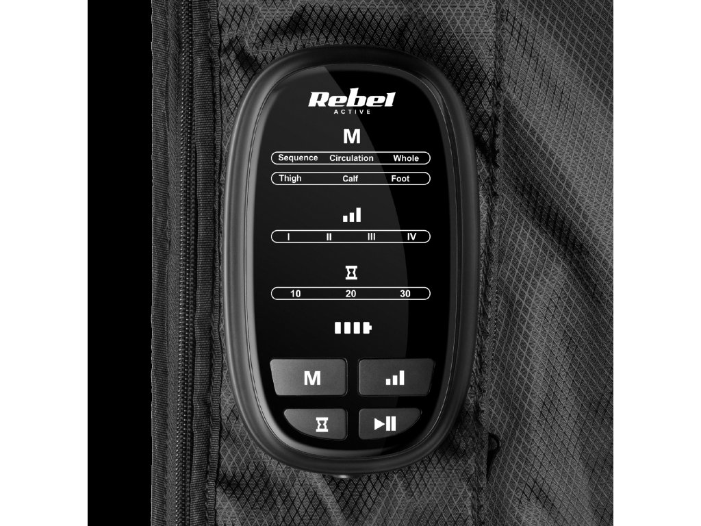 Prístroj na lymfatickú drenáž Rebel Active je zariadenie, ktoré poskytuje zdravie a relax. Toto pokročilé zariadenie určené na nohy pomáha zlepšiť cirkuláciu, znižuje opuchy a podporuje regeneráciu svalov po intenzívnej námahe. Vďaka kompaktným rozmerom, intuitívnej obsluhe a funkciám nebola lymfatická drenáž nikdy tak pohodlná!