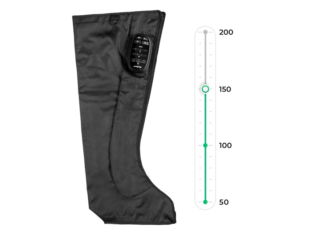Vďaka štyrom úrovniam regulácie tlaku (50, 100, 150 a 200 mmHg) môžete dokonale prispôsobiť intenzitu masáže. Zariadenie zabezpečuje presnú a rovnomernú kompresiu vďaka 5-komorovému dizajnu, čo zvyšuje efektivitu terapie.