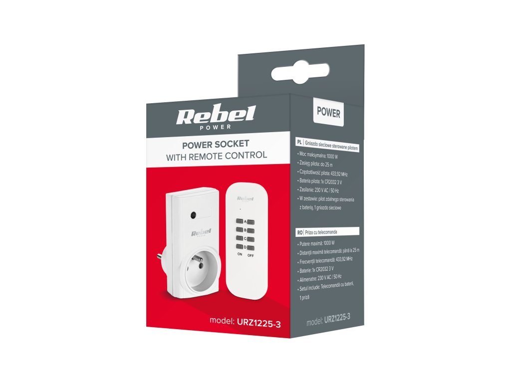Zásuvka na diaľkové ovládanie Rebel bude užitočná v mnohých situáciách. Jedným tlačidlom na diaľkovom ovládači môžete vypnúť lampu, keď sa nepoužíva, odpojiť televízor, keď ho nikto nepozerá, alebo odpojiť nabíjačku, keď sa nepoužíva. Začnite kontrolovať svoju energiu a užívajte si väčšie pohodlie.