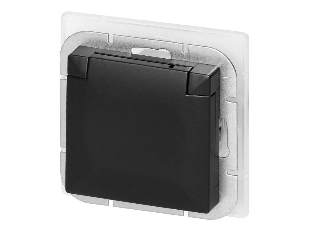 Modulárna séria so symetrickým systémom rámovej dosky (pre 1-, 2-, 3-, 4-, 5-modulov) umožňuje montáž produktu v horizontálnej aj vertikálnej polohe. Moderný mechanizmus rýchleho spojenia (drôty sa pripájajú vložením priamo do tela) poskytuje bezpečnú a spoľahlivú inštaláciu a odstránenie drôtov. Zásuvky sú vybavené tradičnými skrutkovými spojmi. Vnútorný dizajn svoriek zaručuje bezpečné spojenie drôtov od 0,75 mm? do 2,5 mm?. Silná a robustná montážna doska a vysokokvalitné samoťahacie prvky umožňujú stabilnú a bezpečnú montáž v krabici. Špeciálne pružinové prvky uľahčujú vloženie rámu do tela.Jednotlivá francúzska zásuvka 2P+E, vodeodolná s krytom. Určená na zapustenú montáž. Mala by sa používať v interiéri (IP20).