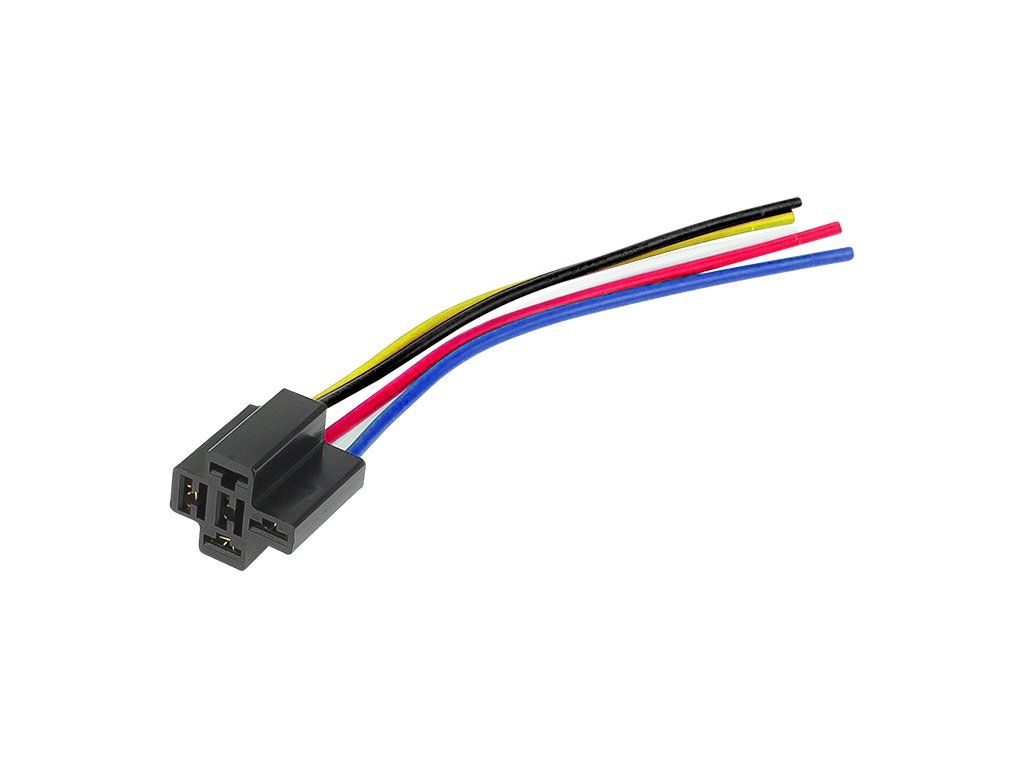Produkt je vybavený 5 vodičmi a poskytuje dostatočné možnosti zapojenia pre bežné reléové aplikácie. Vodiče sú farebne rozlíšené, čo uľahčuje montáž aj orientáciu pri pripojení.