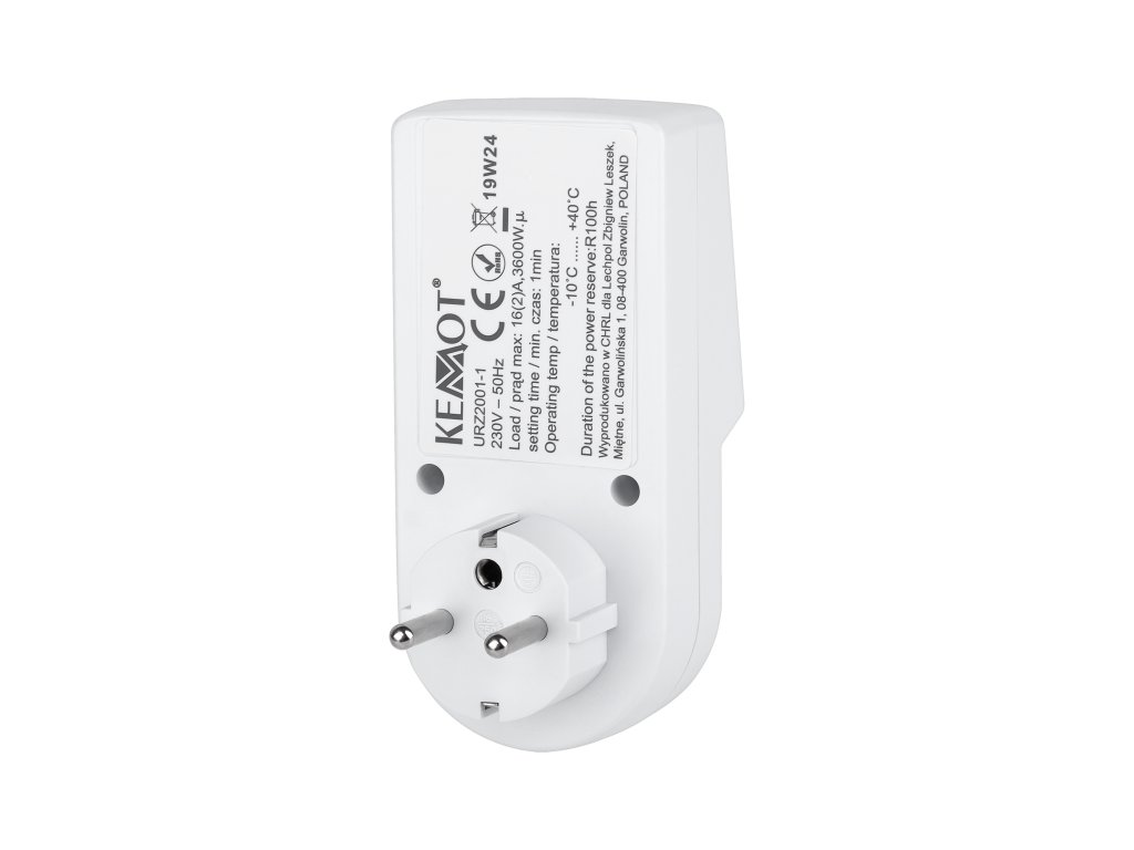 Jednoduché ovládanie zaručujú intuitívne tlačidlá a ľahko čitateľný LCD displej s možnosťou výberu 12- alebo 24-hodinového zobrazenia času. Rozsiahla funkčnosť časovača, založená na možnosti nastavenia 10 programov a 16 kombinácií jednotlivých dní alebo skupín dní, znamená, že jeho prevádzku môžete ľubovoľne prispôsobiť svojim potrebám. Pripojte akýkoľvek spotrebič, naprogramujte požadované hodiny a časovač KEMOT vám ušetrí čas a peniaze tým, že zapne alebo vypne napájanie len vtedy, keď to potrebujete.