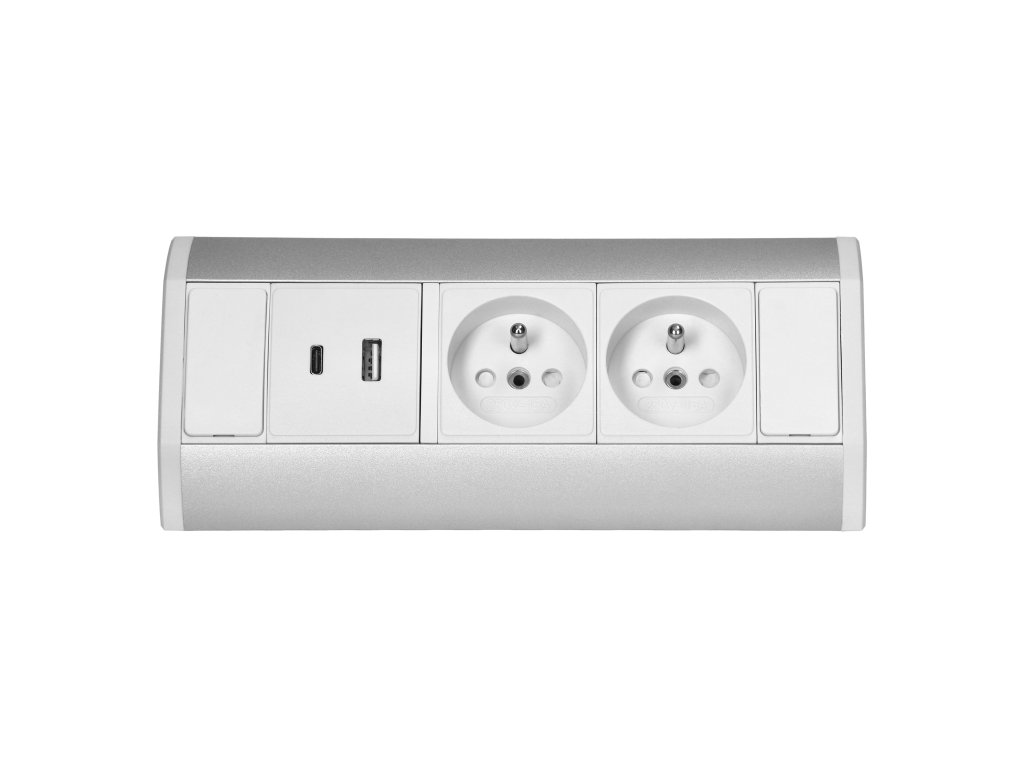 - Moderný dizajn: Elegantná kombinácia bielej a striebornej farby umožní, aby zásuvka ladila s akýmkoľvek interiérom, či už ide o vašu domácnosť, kanceláriu alebo iný priestor.