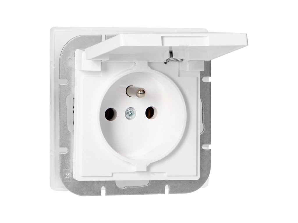 Zásuvka zapustená s krytom 2P+E odolná voči poveternostným vplyvom, biela, 16A, 250V, PT-16PH
