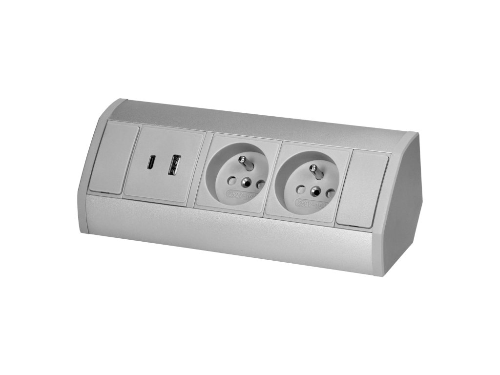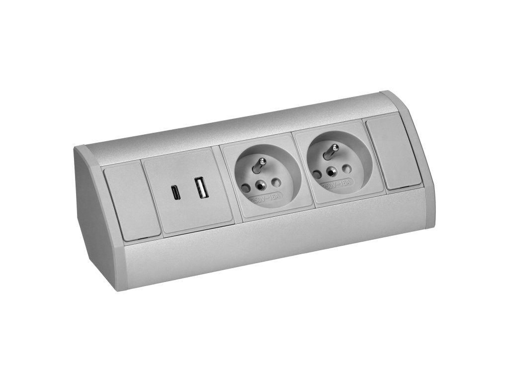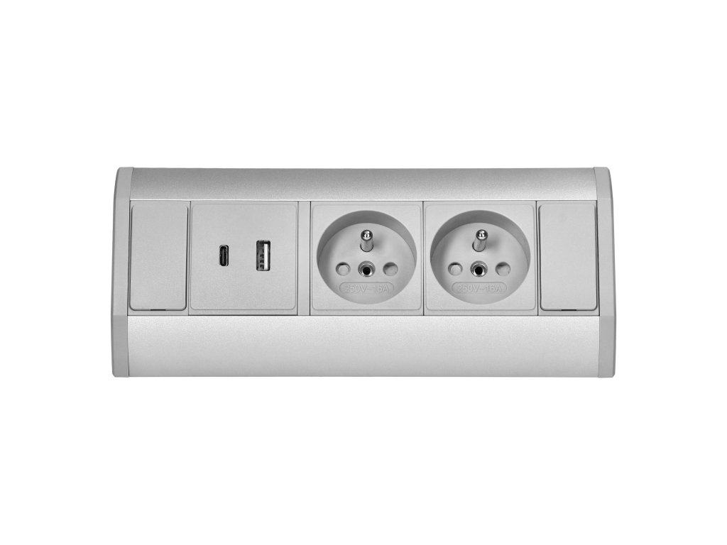 Zásuvkový panel 2x220V + 2xUSB A/C, sivostrieborný
