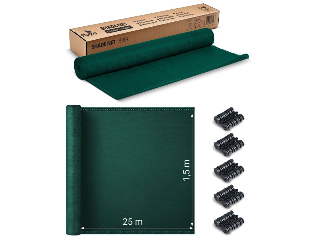 Zatieňovacia sieť 1,5x25m 110 g/m2 + 50 svoriek zelená