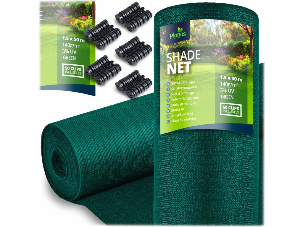 Zatieňovacia sieť 1,5x50m 140g/m2 + 50 svoriek zelená
