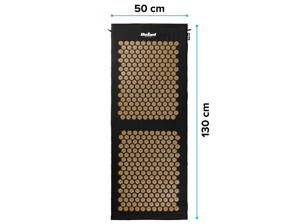 Zdravotná podložka ECO s hrotmi na akupresúru s vankúšom, 130x50cm, XXL, zlaté hroty, Rebel Active