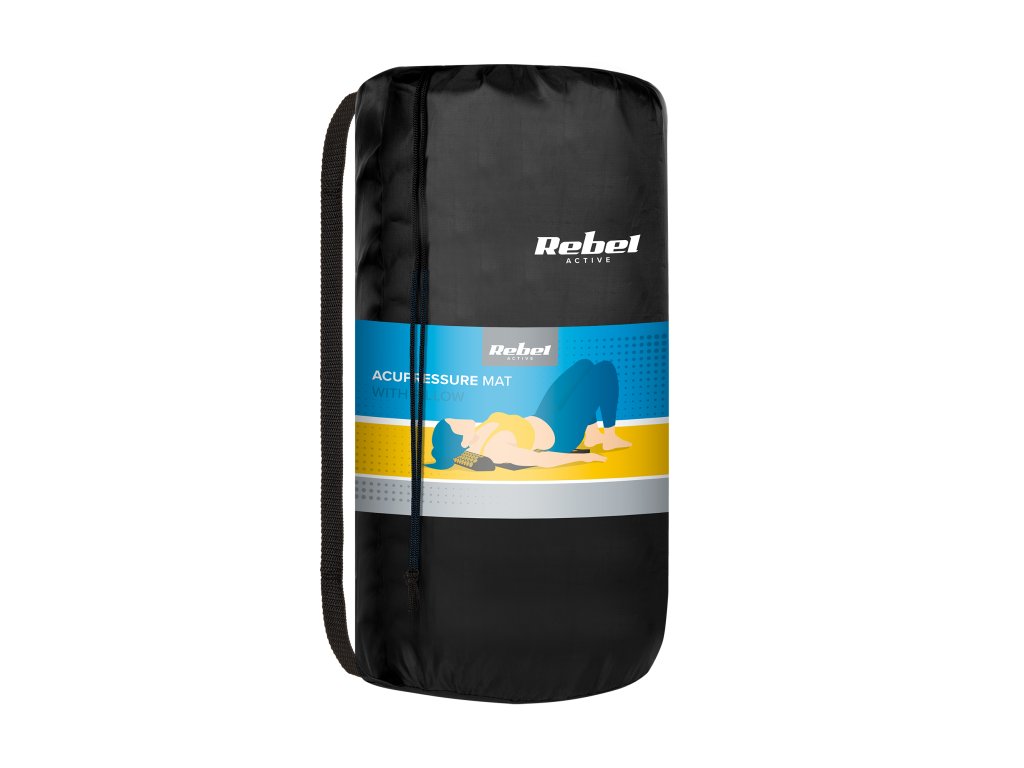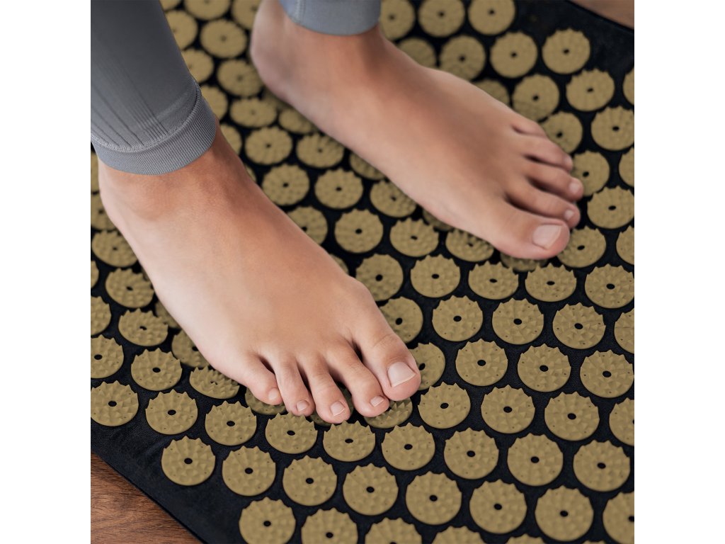 Zdravotná podložka s bodcami na akupresúru s vankúšom, 72x42cm, zlaté bodce, Rebel Active