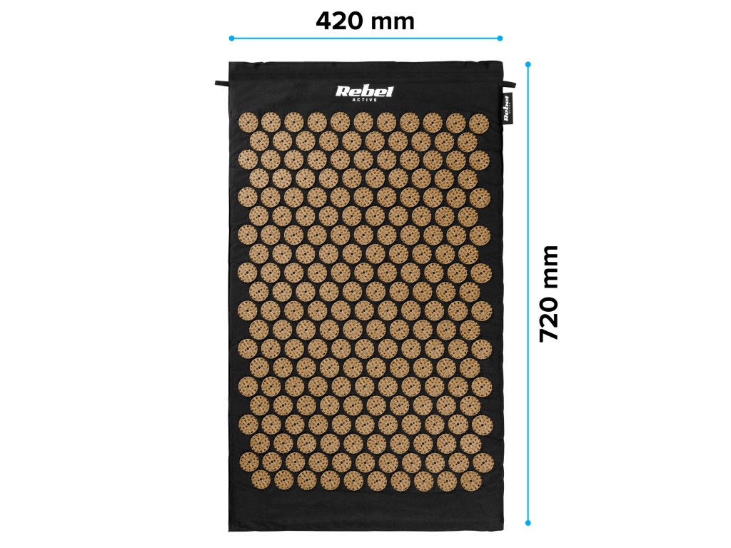 Akupresúrna podložka Rebel Active má rozmery 130 x 50 cm, čo zaručuje optimálny priestor na relaxáciu a akupresúrnu terapiu. Optimálna plocha umožňuje pohodlnú reláciu na ležanie s komplexnou stimuláciou akupresúrnych bodov.