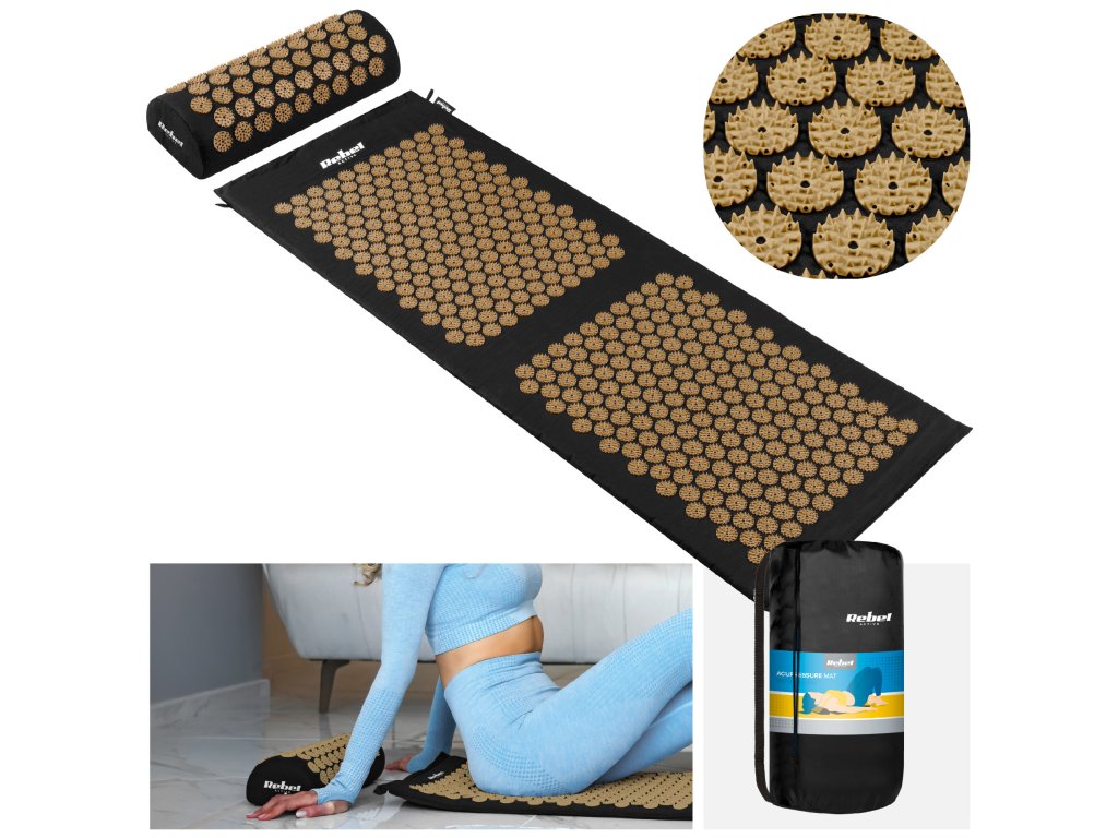Zdravotná podložka s hrotmi na akupresúru s vankúšom, 130x50cm, zlaté hroty, Rebel Active